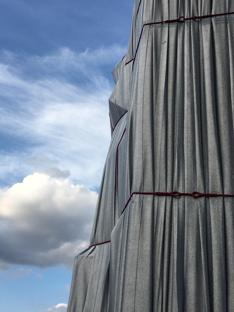 It felt as if the neoclassic Arc de Triomphe metamorphosed after a deep sleep sunk by Napoleon over 180 years ago into a venerable goddess. And then, all of a sudden, rigorously ‘wrapped’ in her silver blue antic dress and tied up with a powerful red ribbon, she seemed to free the place de l’Etoile and radiated this emblematic public space unrestrained for the Parisian civil pedestrian.